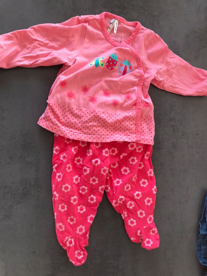 Joli petit pyjama fille, marque orchestra bébé, taille 6 mois, très pratique, fermeture cache-cœur pour le haut, pantalon avec pieds qui se clipse au haut de pyjama, très bon état, pas de tâches