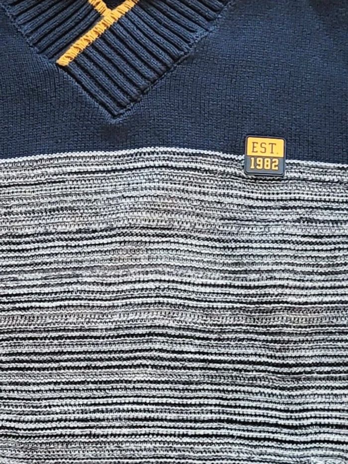 Joli pull bleu gris moutarde. Garçon 14 ans. Marque Orchestra