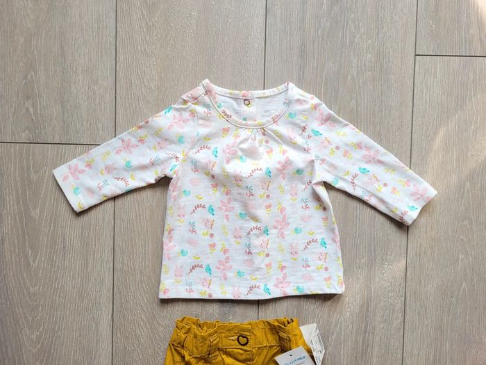 Très bel ensemble moutarde et blanc à motif. Fille 3 mois. Marque Orchestra/Kiabi - photo numéro 4