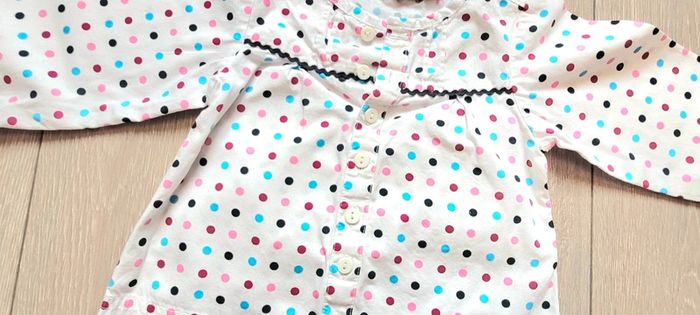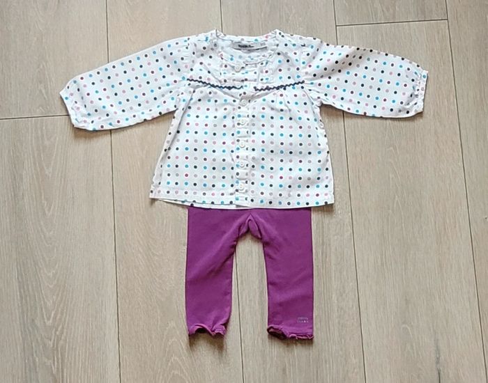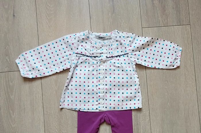 Très bel ensemble : - blouse blanc à pois multicolore. Marque Tape à l'oeil - leggins violet. Marque Mexx Fille 6 mois Très bon état Il y a plein d autres articles dans cette taille dans mon dressing  🤗 #lunaclara60fille6mois