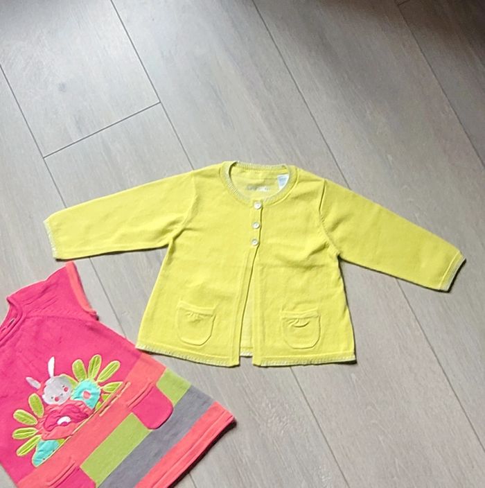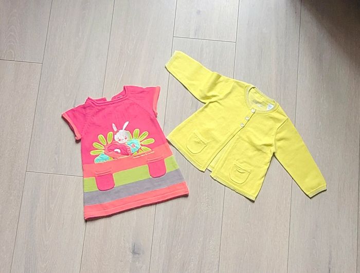 Très très belle ensemble frais et coloré , en matière laine mais très fine. - Robe de marque Orchestra - Gilet de marque Obaibi Fille 6 mois En excellent état Il y a plein d autres articles dans cette taille dans mon dressing  🤗 #lunaclara60fille6mois