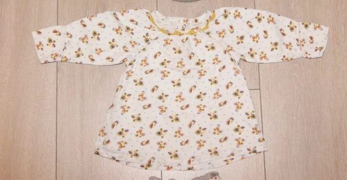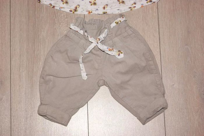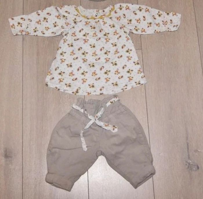 Ensemble 2 pièces : - maillot creme avec des motif - pantalon en velour fine maille couleur beige, avec une ceinture avec le même tissus que le maillot Fille 3 mois. Marque Kitchoun Excellent etat Il y a plein d autres articles dans cette taille dans mon dressing  🤗 #lunaclara60fille3mois