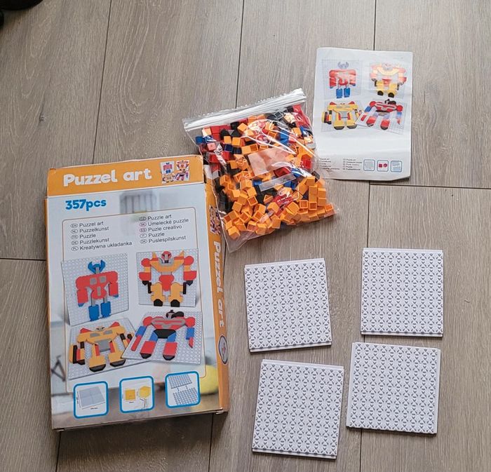 Jeu de 357 pcs, pour faire plusieurs formes sur 4 plaques. Tres ludique et très apprécié par mon fils qui n était pas très jeu de réflexion. Boite complète avec notice Très bon état Il y a plein d autres articles dans cette taille dans mon dressing  🤗 #lunaclara60jouet2eme_age