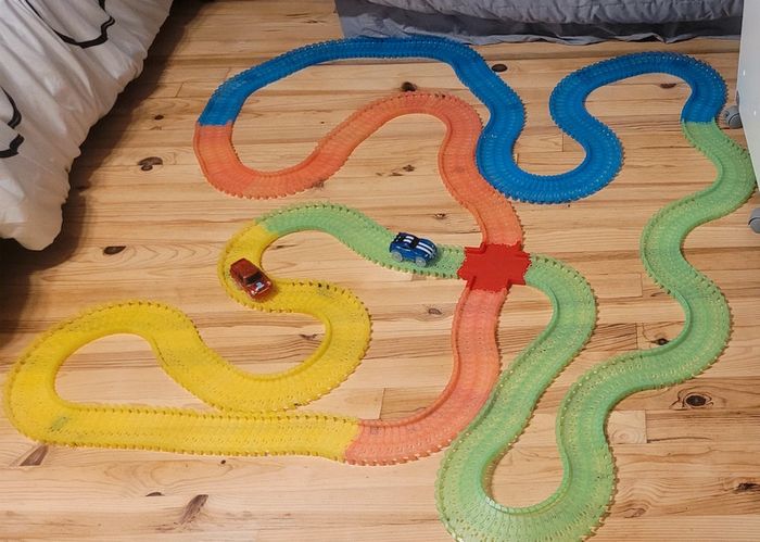 Lot de 3 circuit dont 1 géant + 4 voitures lumineuses qui avancent seules - photo numéro 1