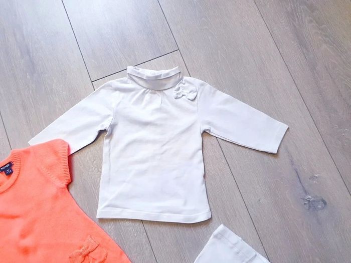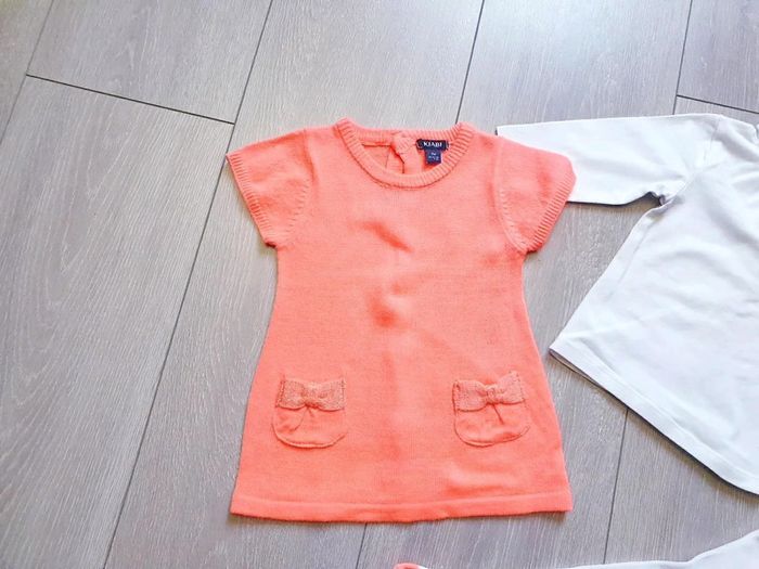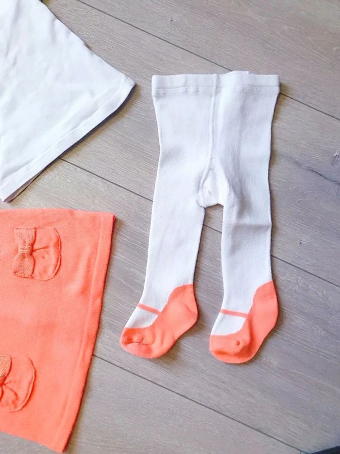 Ensemble 3 pièces : - tres belle robe saumon vif - maillot blanc avec noeud - collant blanc et saumon vif Fille 3 mois. Marque Kiabi Très bon état Il y a plein d autres articles dans cette taille dans mon dressing  🤗 #lunaclara60fille3mois