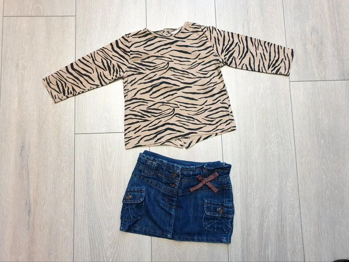 Ensemble 2 pièces : - maillot manche longue marron/noir. Marque Kitchoun - jupe en jeans bleu. Marque Tape à l'oeil Fille 18 mois. Très bon état Il y a plein d autres articles dans cette taille dans mon dressing  🤗 #lunaclara60fille18mois