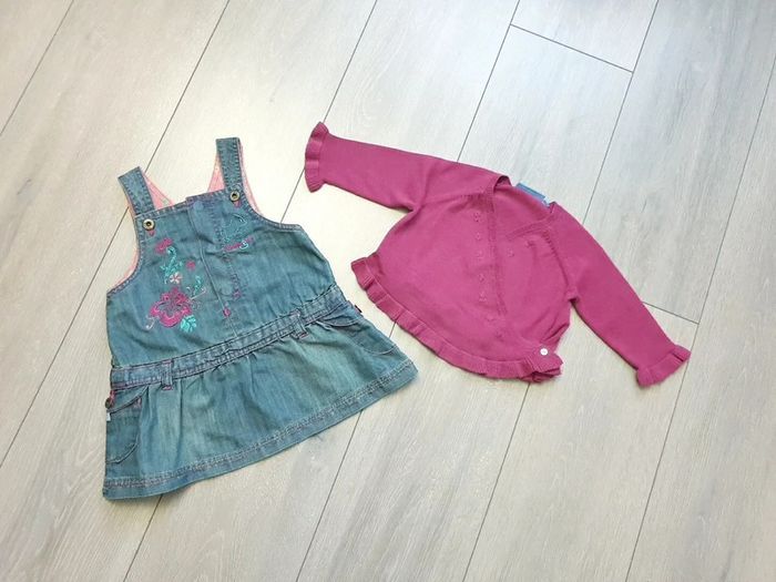 Ensemble 2 pièces : - gilet couleur framboise. Fille 12 mois. Marque Bout'chou - robe en jean bleu. Fille 12 mois. Marque Babygro Très bon état Il y a plein d autres articles dans cette taille dans mon dressing  🤗 #lunaclara60fille12mois