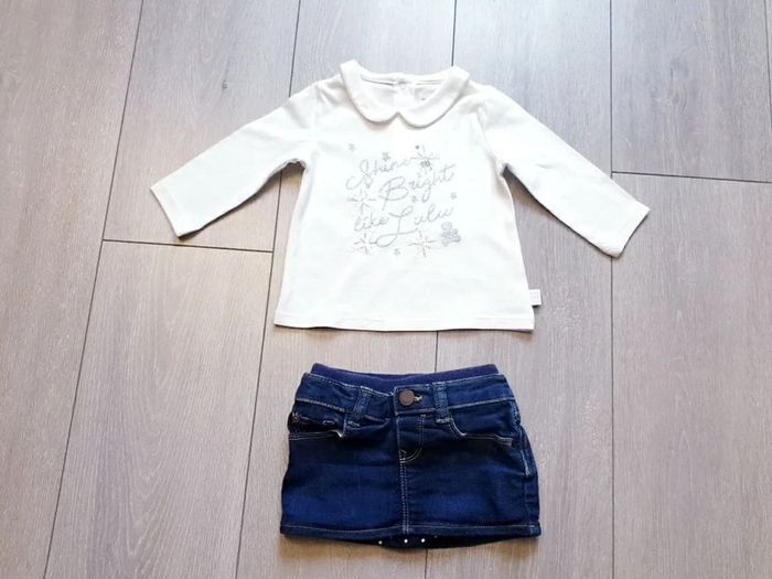 Ensemble 2 pièces : - maillot de longue blanc avec écriture argenté. Fille 12 mois. Marque Lulu castagnette - jupe avec culotte intégrée. Fille 12 mois ( écrit 6/12 mois mais taille 12 mois). Marque Baby Gap Très bon état Il y a plein d autres articles dans cette taille dans mon dressing  🤗 #lunaclara60fille12mois