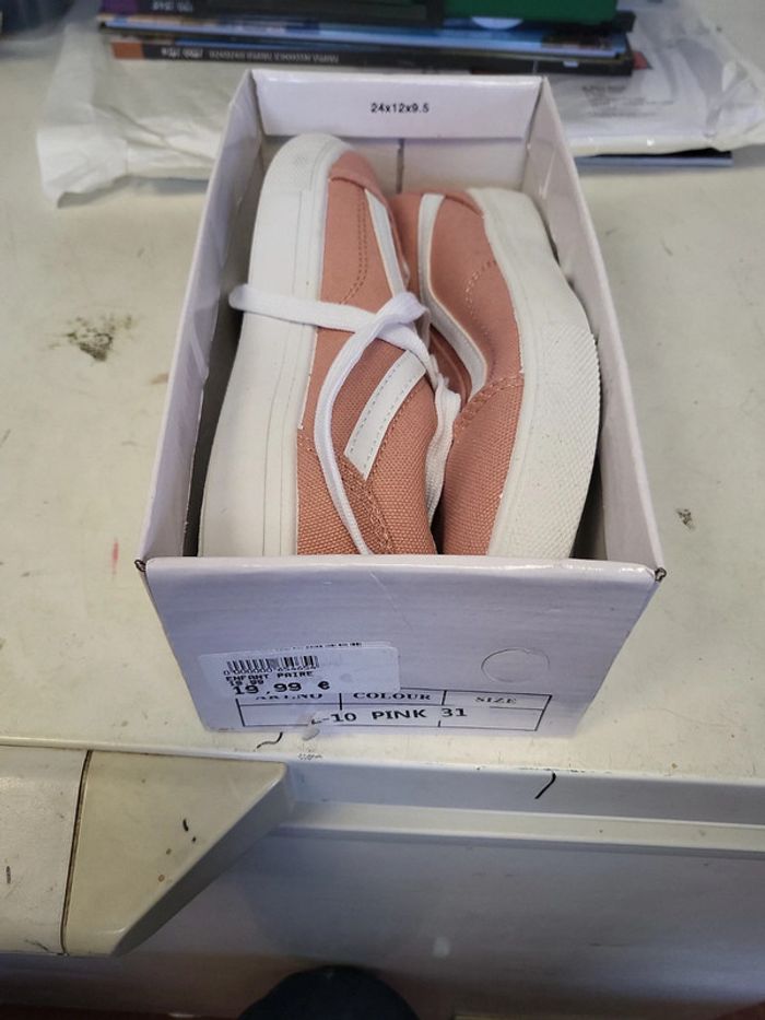 Jolie petite paire de baskets Jamais portées Pas de couvercle sur la boîte