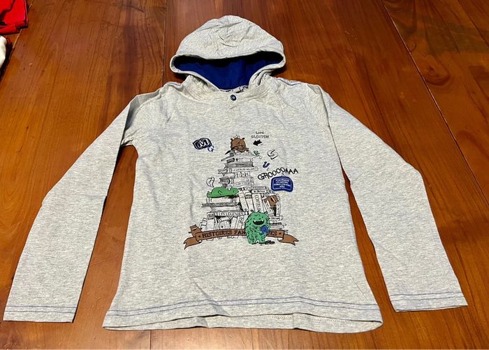 Teeshirt à manches longues et capuche de la marque Sergent Major en taille 7 ans / 122cm. Composition : 88% coton / 12% polyester . Lavable en machine à 30 degrés.
