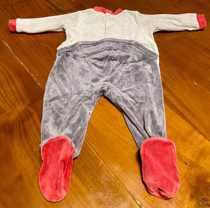 Pyjama d’hiver en velours de la marque Absorba en taille 12 mois / 74cm. Composition : 77% coton, 24% polyester. Lavable en machine à 40 degrés.