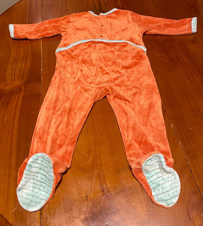 Pyjama d’hiver en velours de la marque Du Pareil au Même en taille 12 mois / 74cm. Composition : 80% coton, 20% polyester. Lavable en machine à 30 degrés.