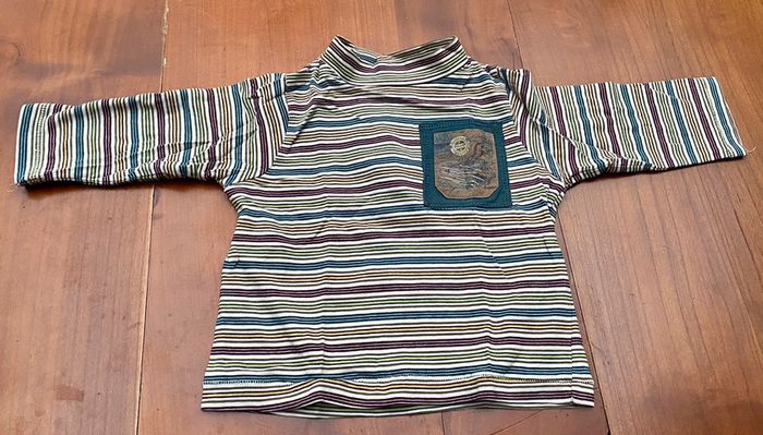 Tee-shirt à manches longues de la marque Sergent Major Gap en taille 12 mois / 74cm. Son col se ferme par 3 boutons pression à l’arrière. Composition : 100% coton. Lavable en machine à 30°.