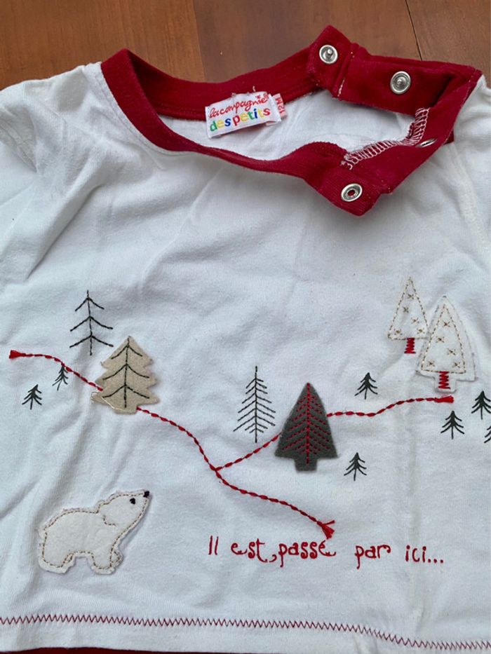 Très joli tee-shirt à manches longues avec broderies sur le thème de Noël de la marque La Compagnie des Petits en taille 12 mois. Composition : 100% coton. Lavable en machine à 40°.