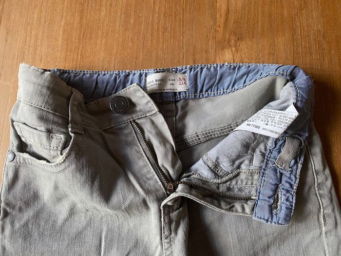 Très joli bermuda de la marque Zara boys en taille 5-6 ans / 116cm. La taille se ferme par un bouton et une fermeture éclair et se règle par deux élastiques. Composition : 98% coton, 2% élasthanne. Lavable en machine à 40°.
