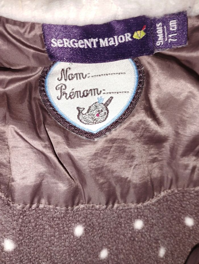 Manteau duvets +moufles Sergent Major T 9 mois couleur parme
