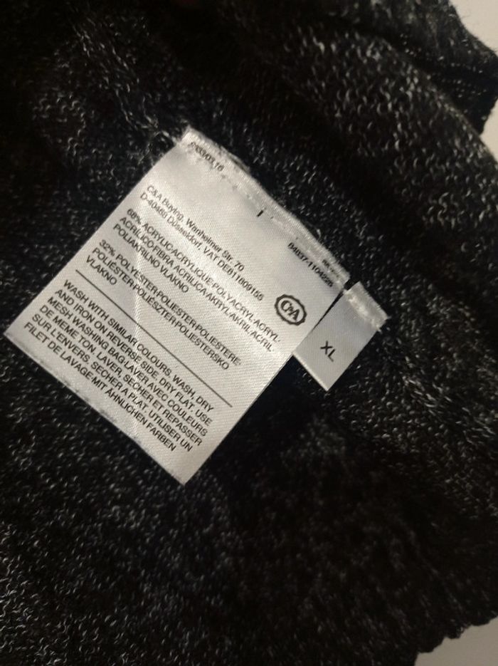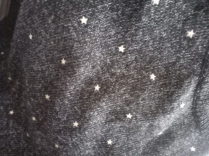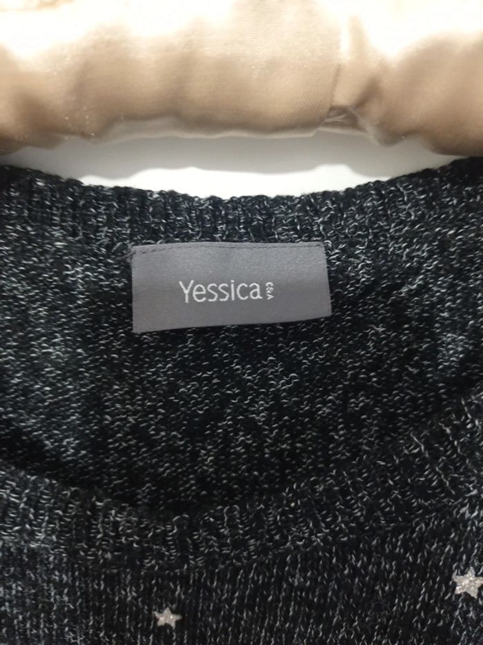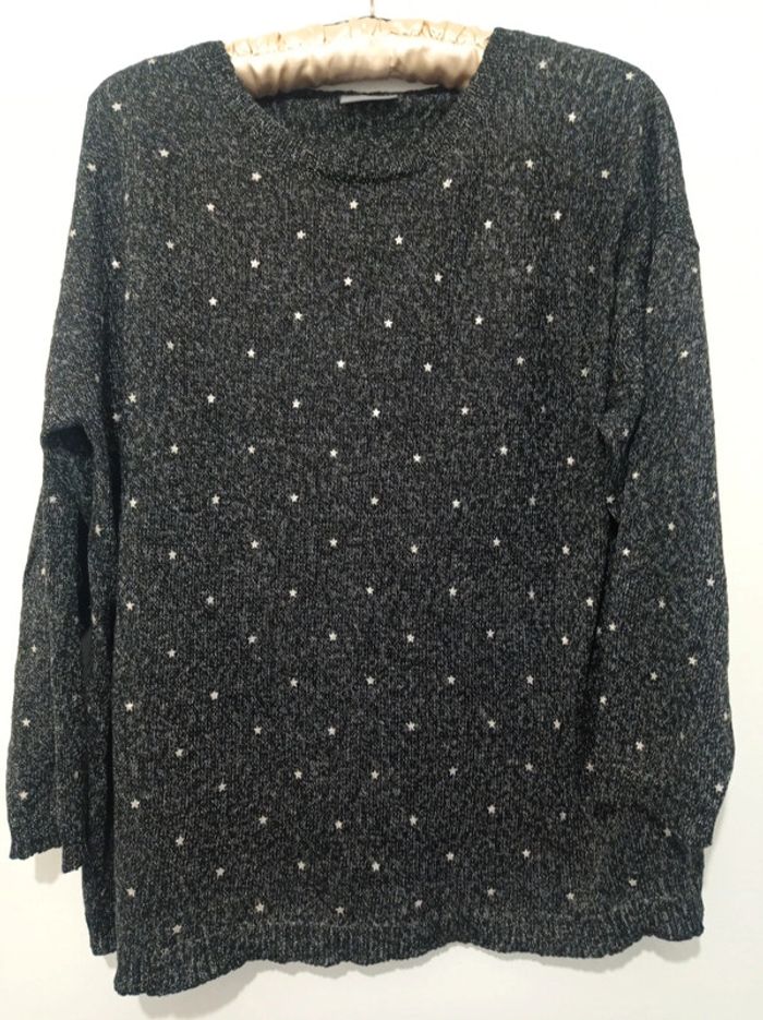 Pull Yessica TXL noir gris chiné, motifs étoiles pailletées TBE