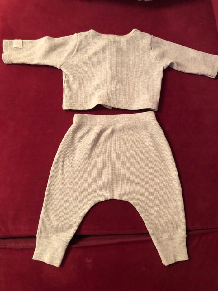 Ensemble gilet pantalon en côte petit bateau 1 mois gris - photo numéro 1