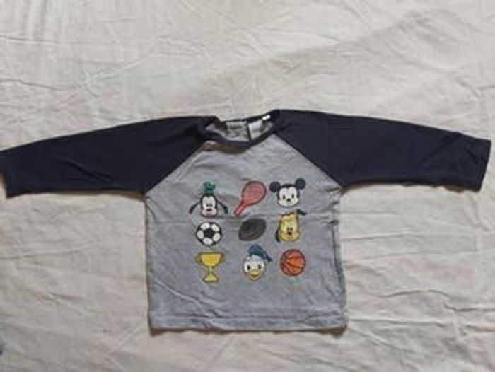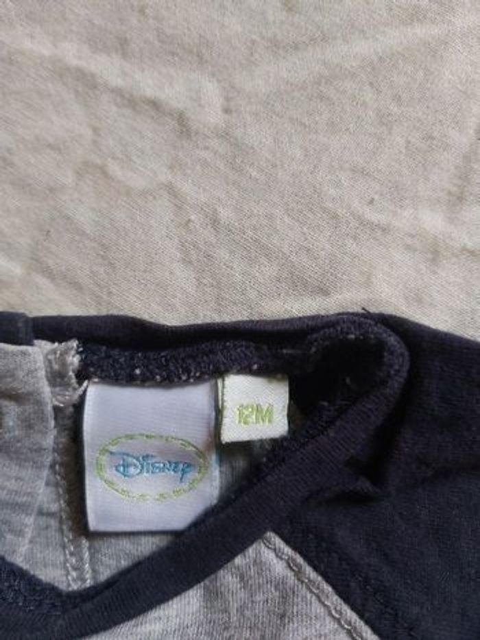 Tshirt manche longue Motif Micket et ses amis Taille 12 mois Fermeture par pression dans le dos Couleur gris et marine Marque Disney
