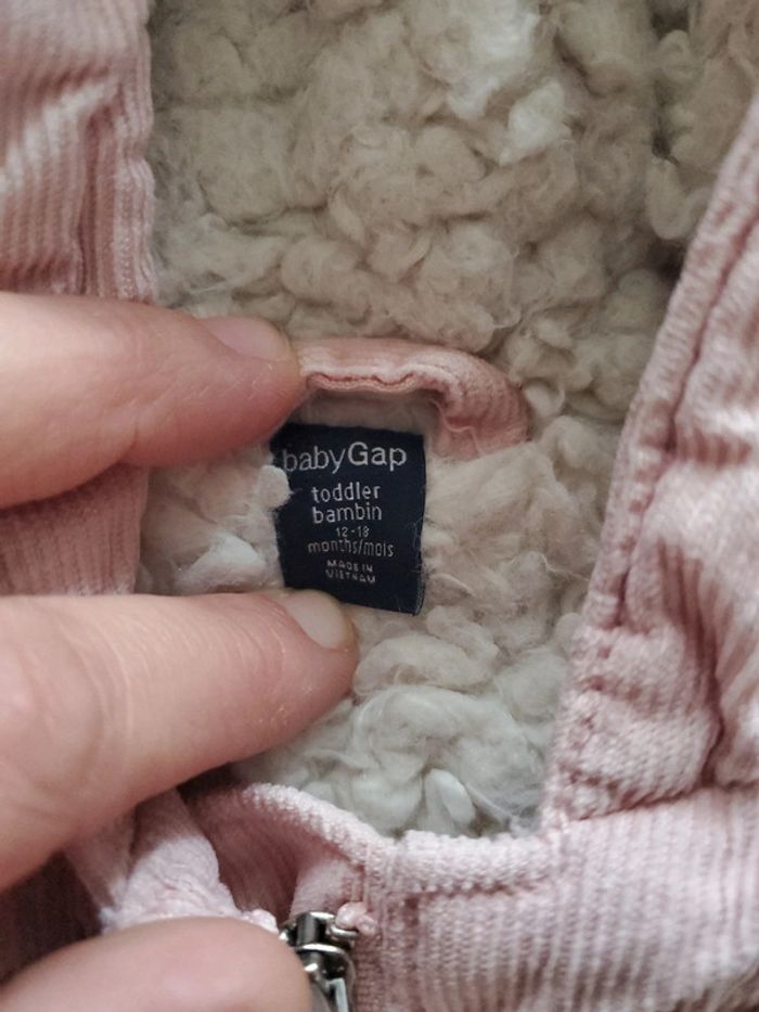Manteau gap rose en velours côtelé, fourré à l'intérieur taille 12/18 mois