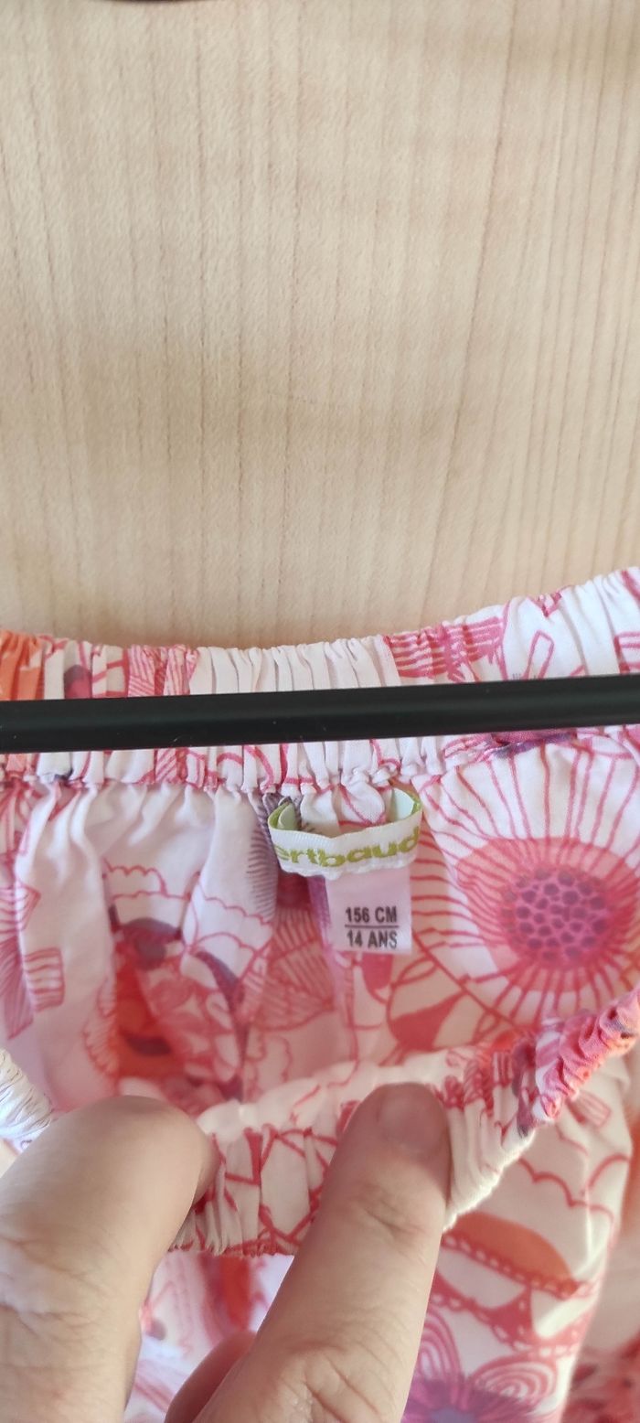 Achetée neuve en magasin. En très bon état. Tunique été corail/blanc fleuri. Vertbaudet. 14 ans.