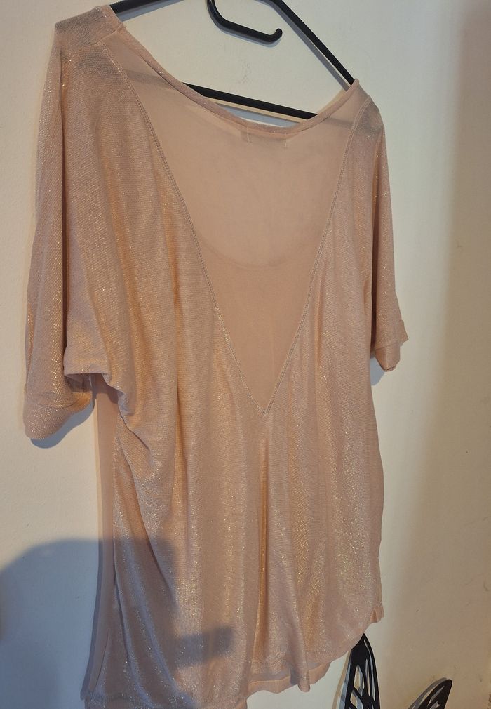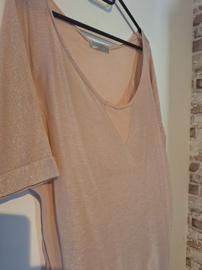 FEMME 38 / M N°1447 maillot rose poudré Paillette , fil argenté Taille 38 / m 61 % viscose 12% polyester 7% fibre métallique Jennyfer 4€ #kelly_femmeT38
