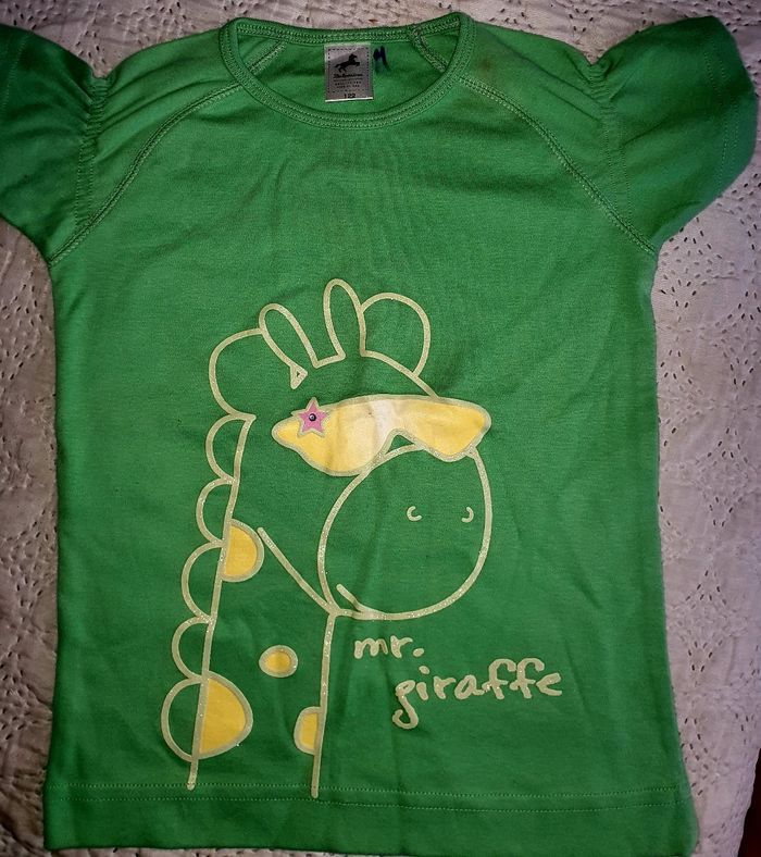 Haut neuf fille 100% coton manches courtes col rond Motif " monsieur girafe" Taille 122 cm ( environ 6/7 ans)