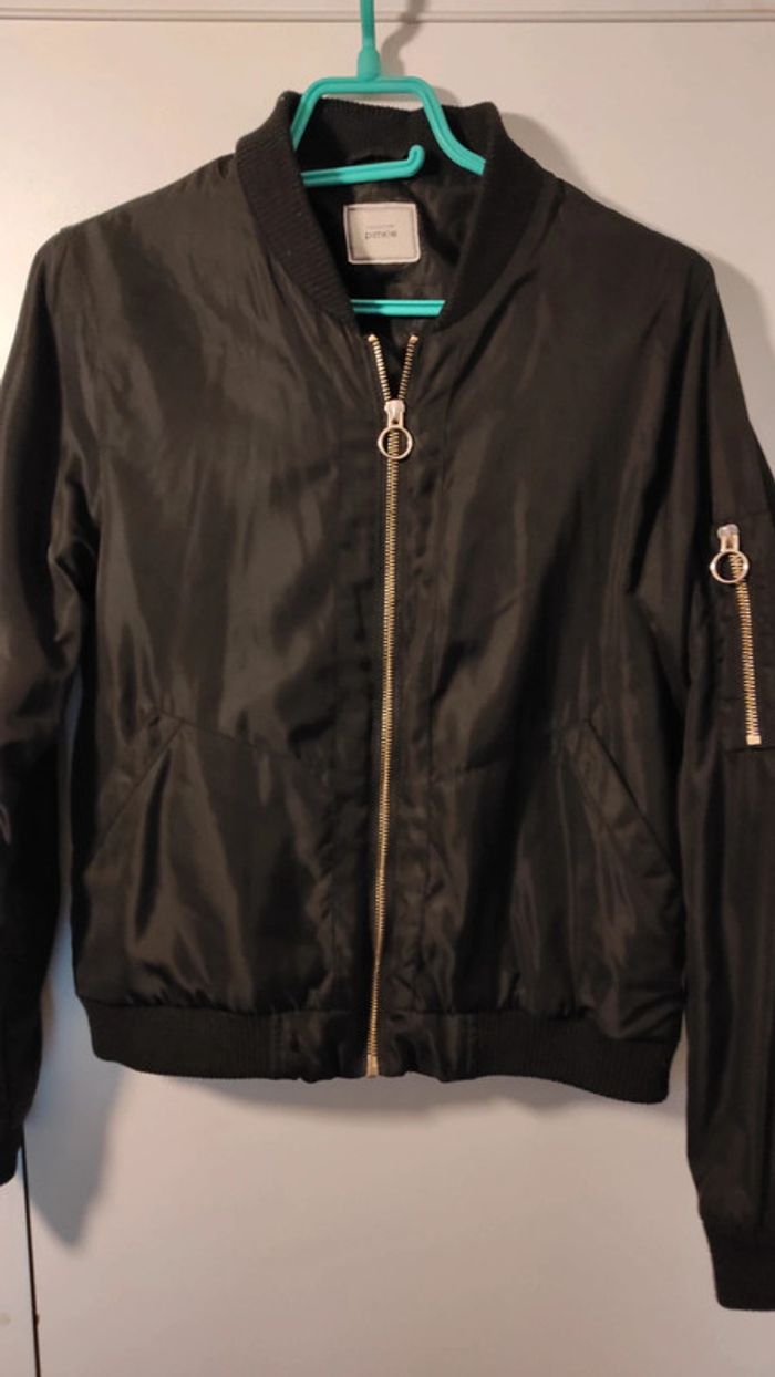 Blouson zippé type bomber noir en très bon état général. 2 poches.