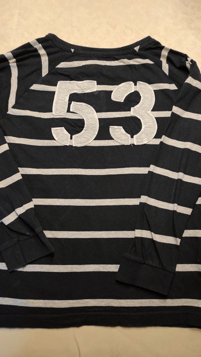 Tee shirt manches longues à rayures marine et gris clair en très bon état