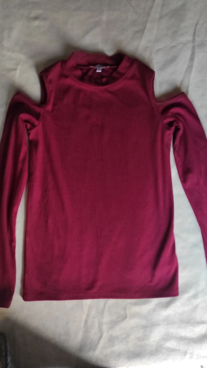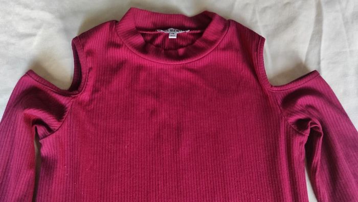 Joli haut bordeaux avec épaules découvertes en très bon état.