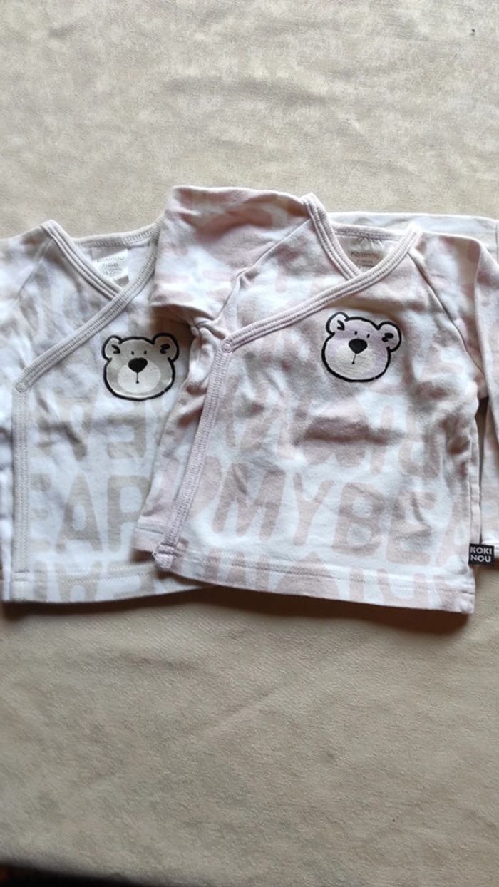 Petits tee-shirts manches longues fermeture boutons pressions.un beige et un rose.En très bon état