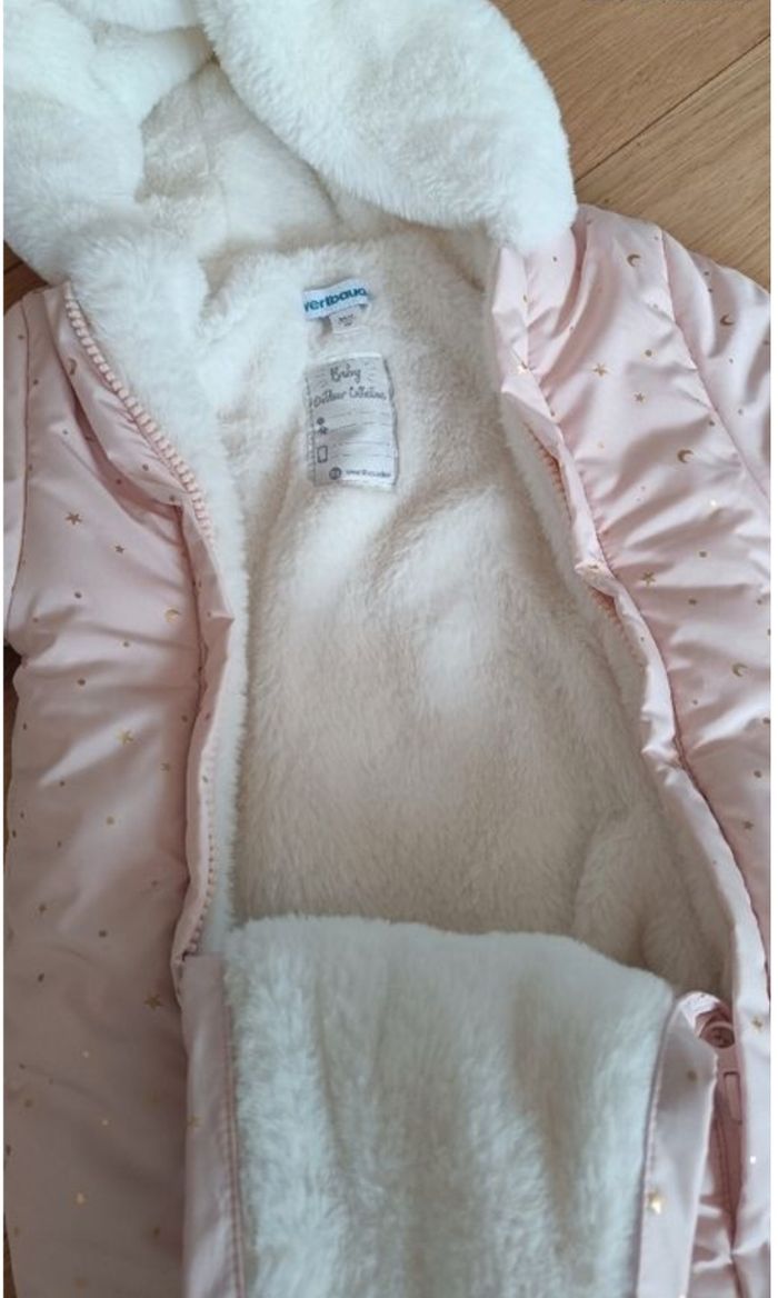 Mise en vente combinaison pilote de couleur rose pâle Motifs étoiles Taille 1 mois 56 cm Neuve Maison sans fumeurs ni animaux Intérieur velours blanc Prix neuf 42,99€