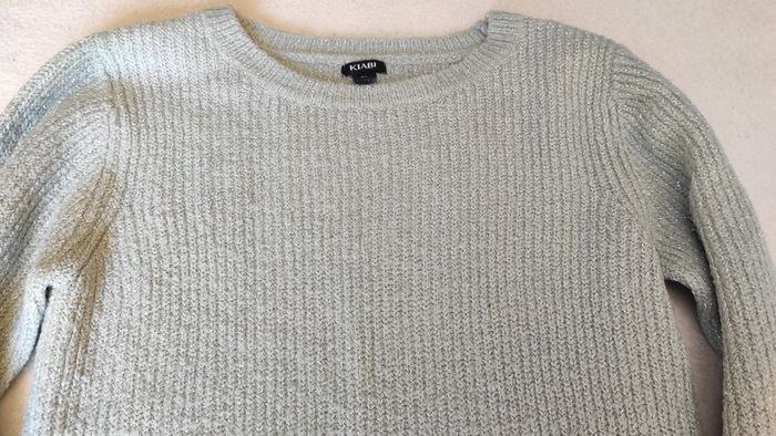 Pull avec laine incrustée défilé argentés. Bon état général. Quelques bouloches.