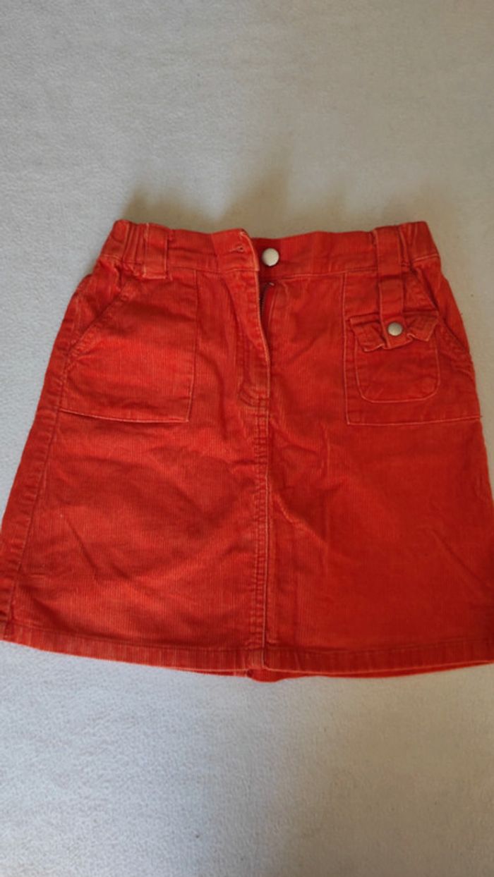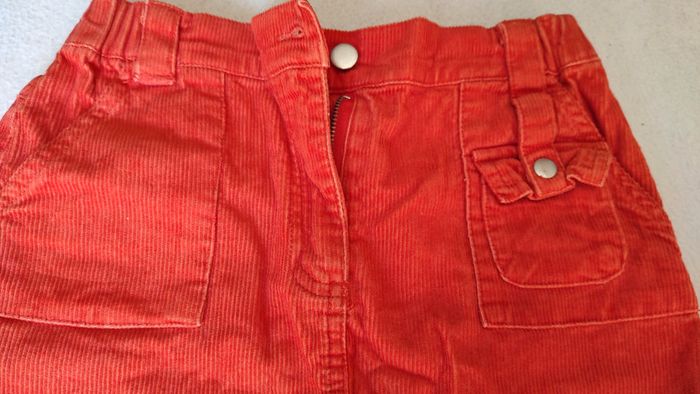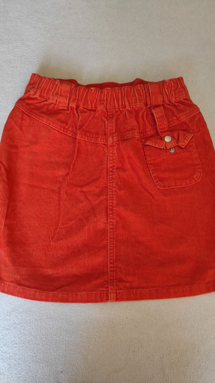 Jupe en velours orange avec 3 poches à l'avant et 1 poche à l'arrière. Très bon état