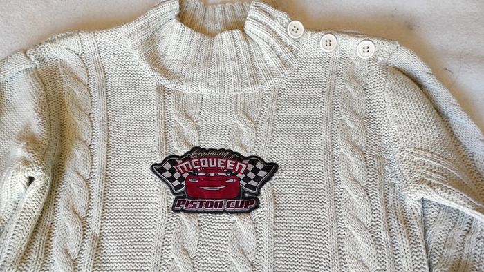 Pull Cars ayant servi mais reste en bon état général. 4 boutons à l'encolure.