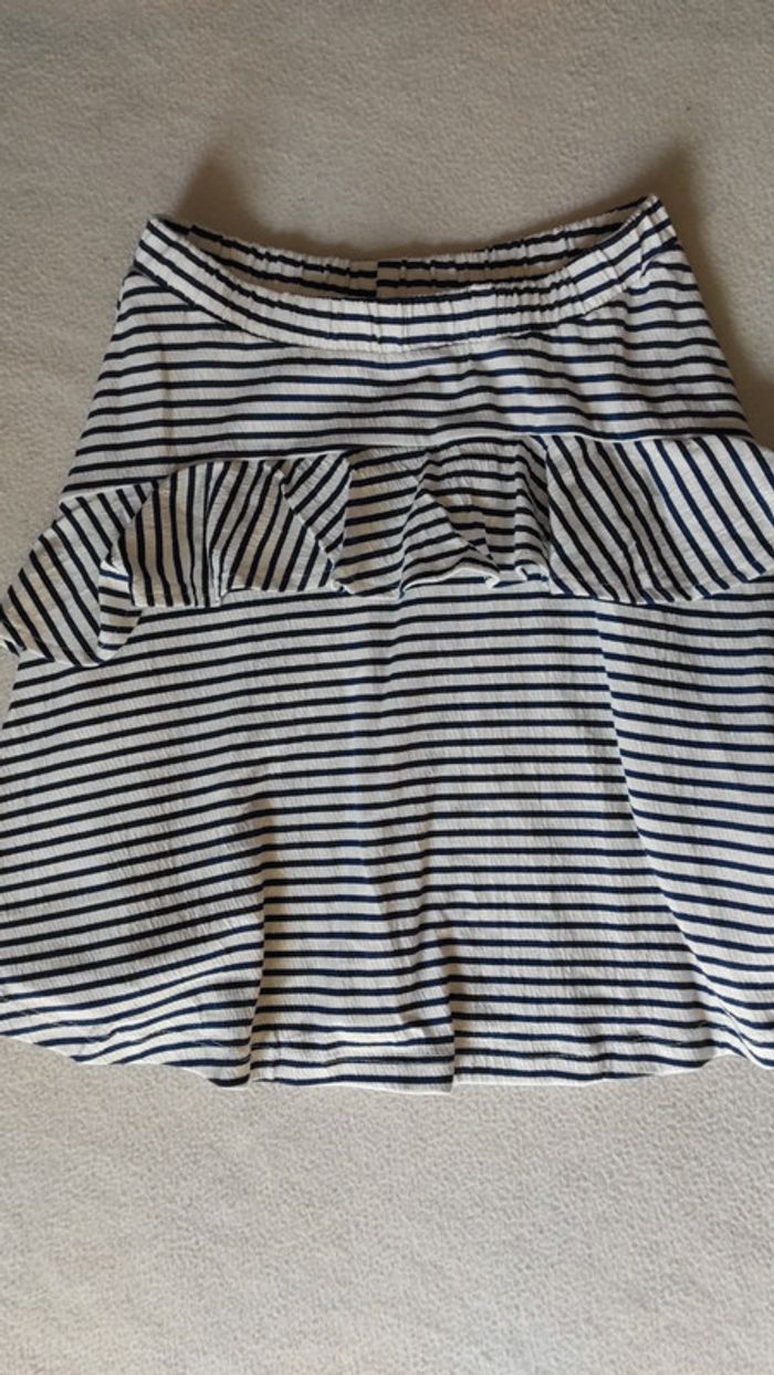 Jolie jupe à rayures avec un volant à l'avant. Neuve.