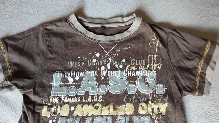 Tee-shirt manches courtes beige et marron en très bon état.