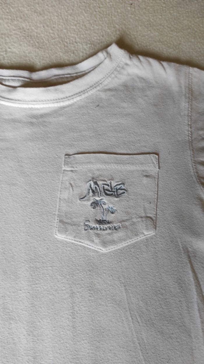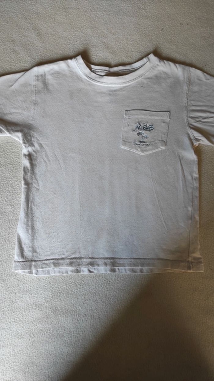 Tee-shirt manches courtes blanc avec poche motif bleu clair.