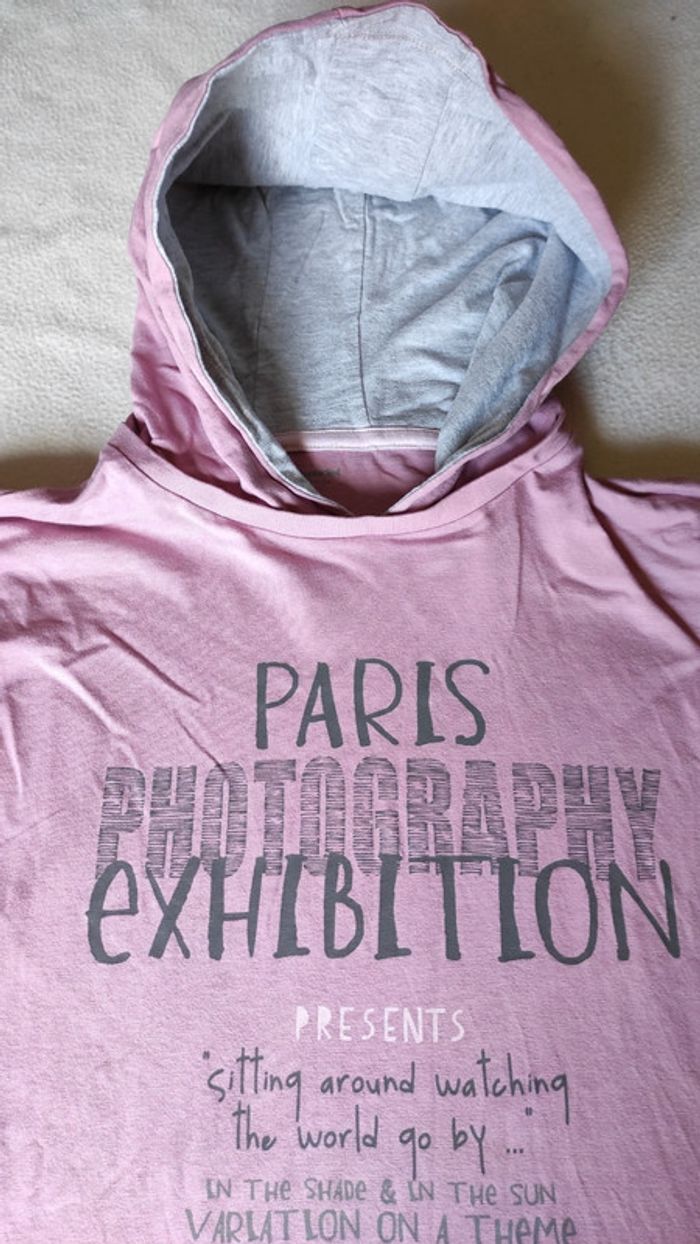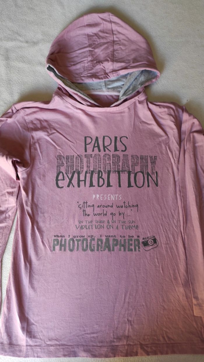 Tee-shirt à capuche rose et gris manches longues en très bon état
