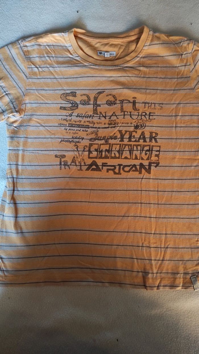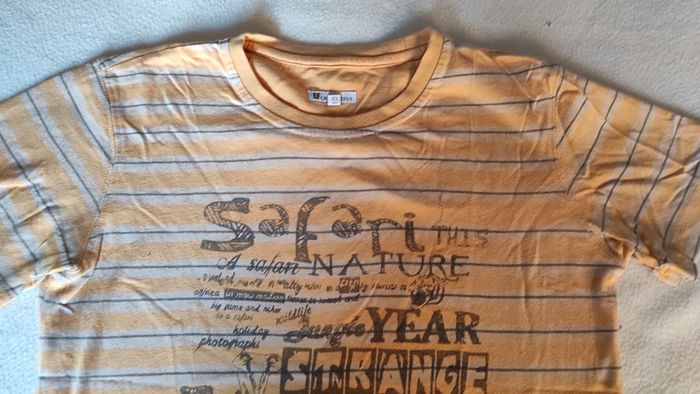 Tee-shirt manches courtes safari marron et jaune orangé.