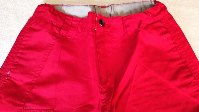 Short long rouge. Taille élastique réglable.Bouton pression. 2 poches latérales. Très bon état