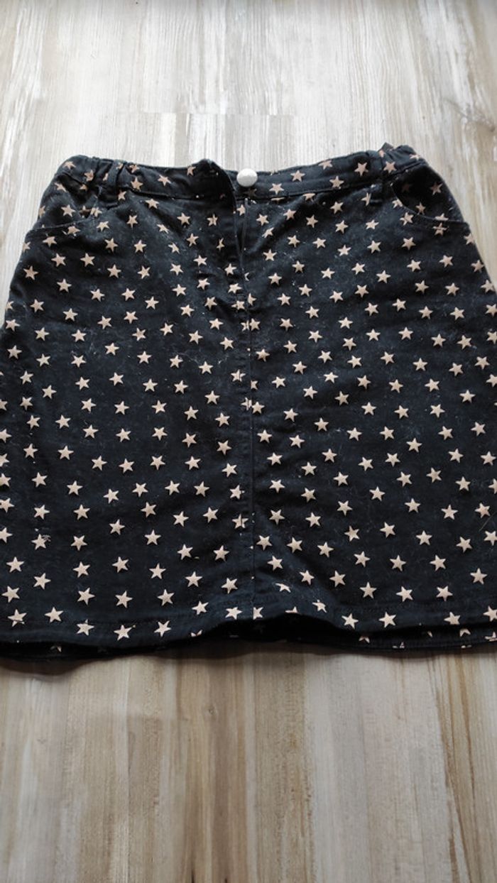 Jupe courte noire avec des étoiles beiges. Taille élastique