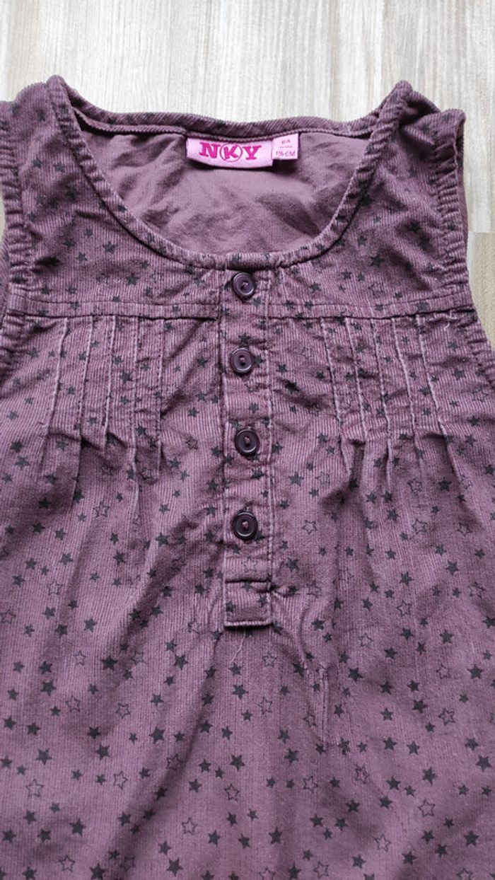 Robe velours violine avec des petites étoiles. Volant en bas de la robe