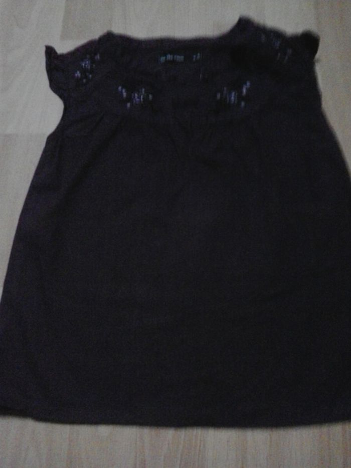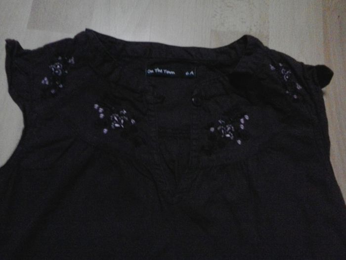 Tunique prune manches courtes avec motifs fleurs brodées autour du col.