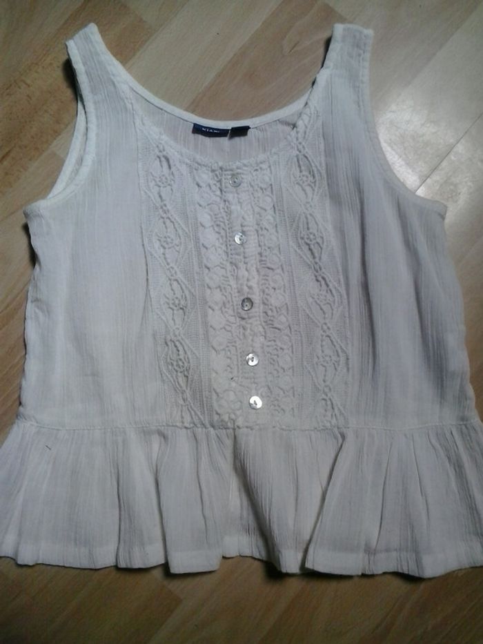 Débardeur blanc crème avec broderies à l'avant. Effet froissé.