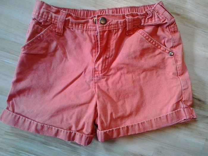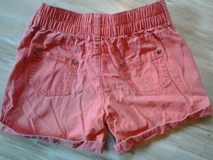 Short jean rouge délavé. 2 poches avant et 2 poches arrière. Taille élastique réglable.