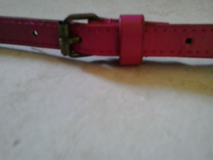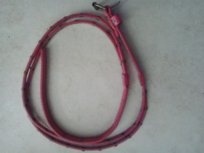 Ceinture fille rose. Longueur jusqu'au premier trou 59 cm et dernier trou 69 cm. Taille 6-10 ans selon le tour de taille