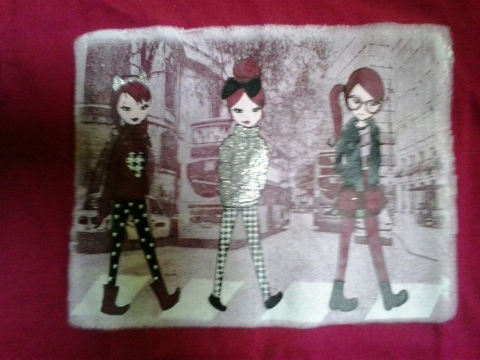 Tee-shirt manches longues fuchsia avec motif personnages.