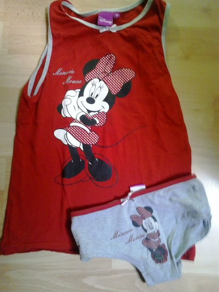 Ensemble débardeur + culotte Minnie. La Minnie de la culotte est un peu passée par le lavage.