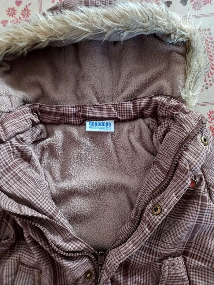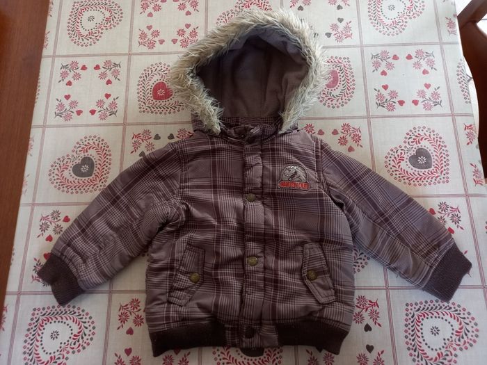 Taille 92cm 1an et demi - 2ans, couleur marron claire. Molletonné à l'intérieur, capuche détachable par des boutons pression.